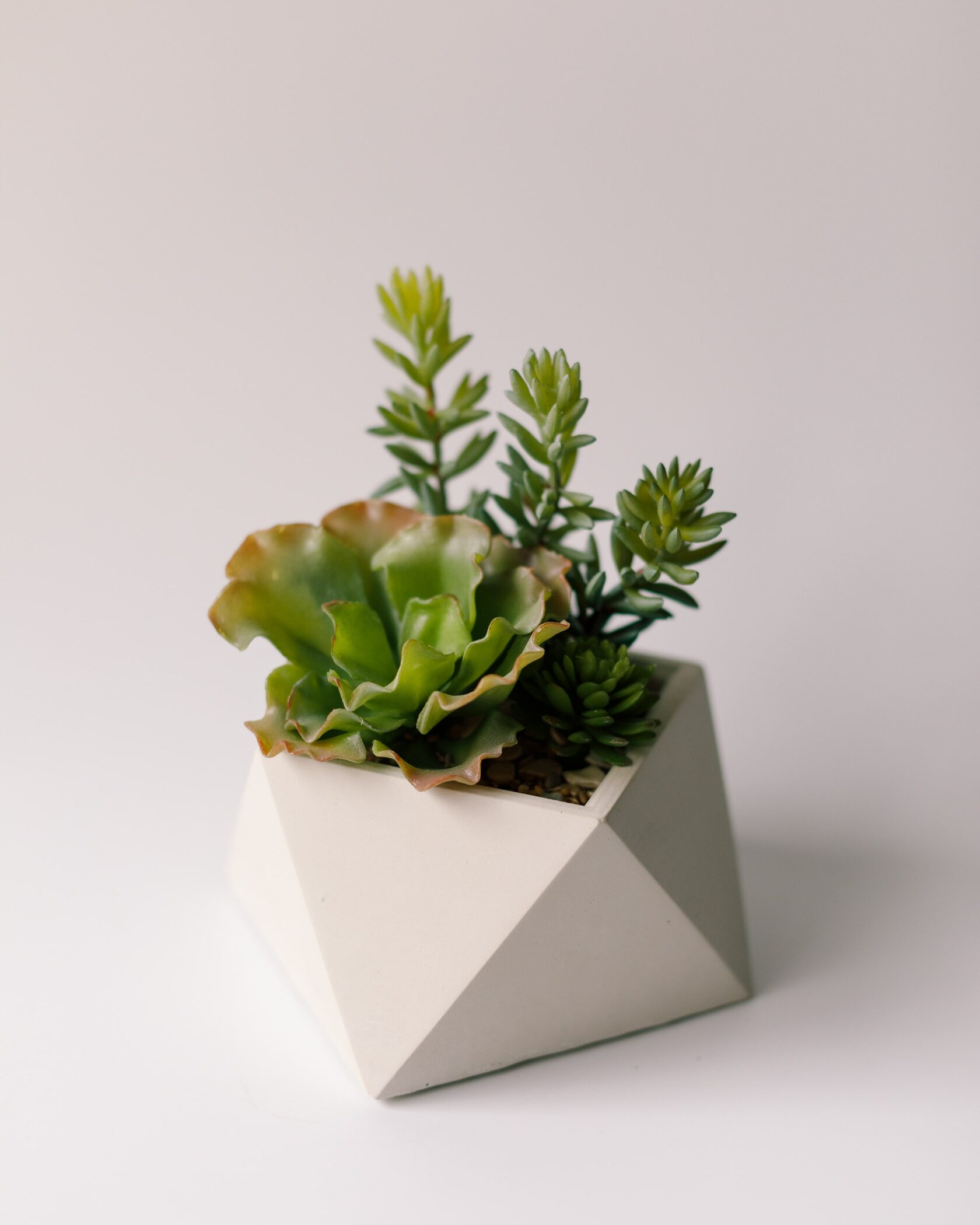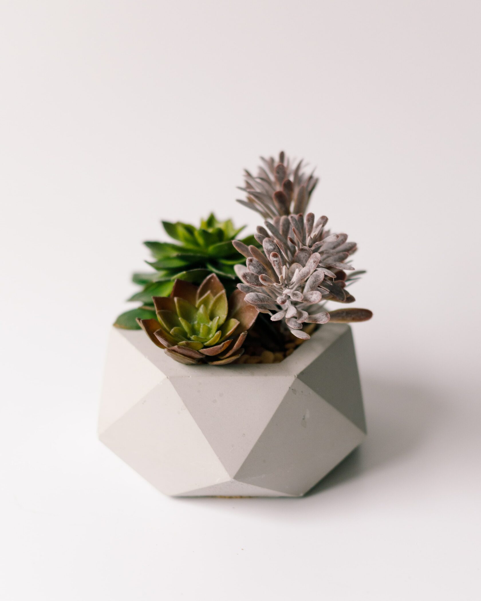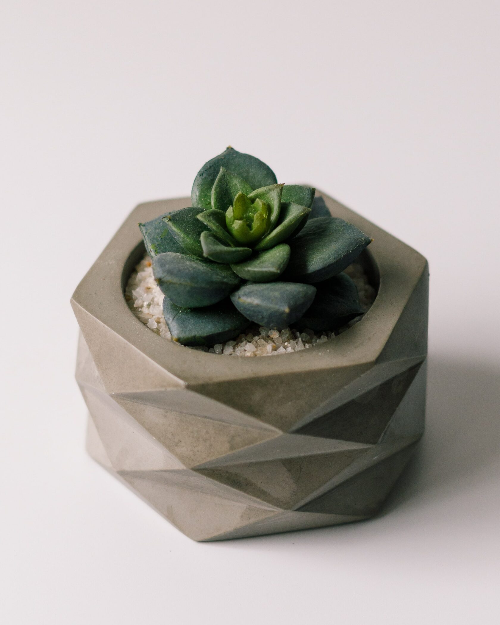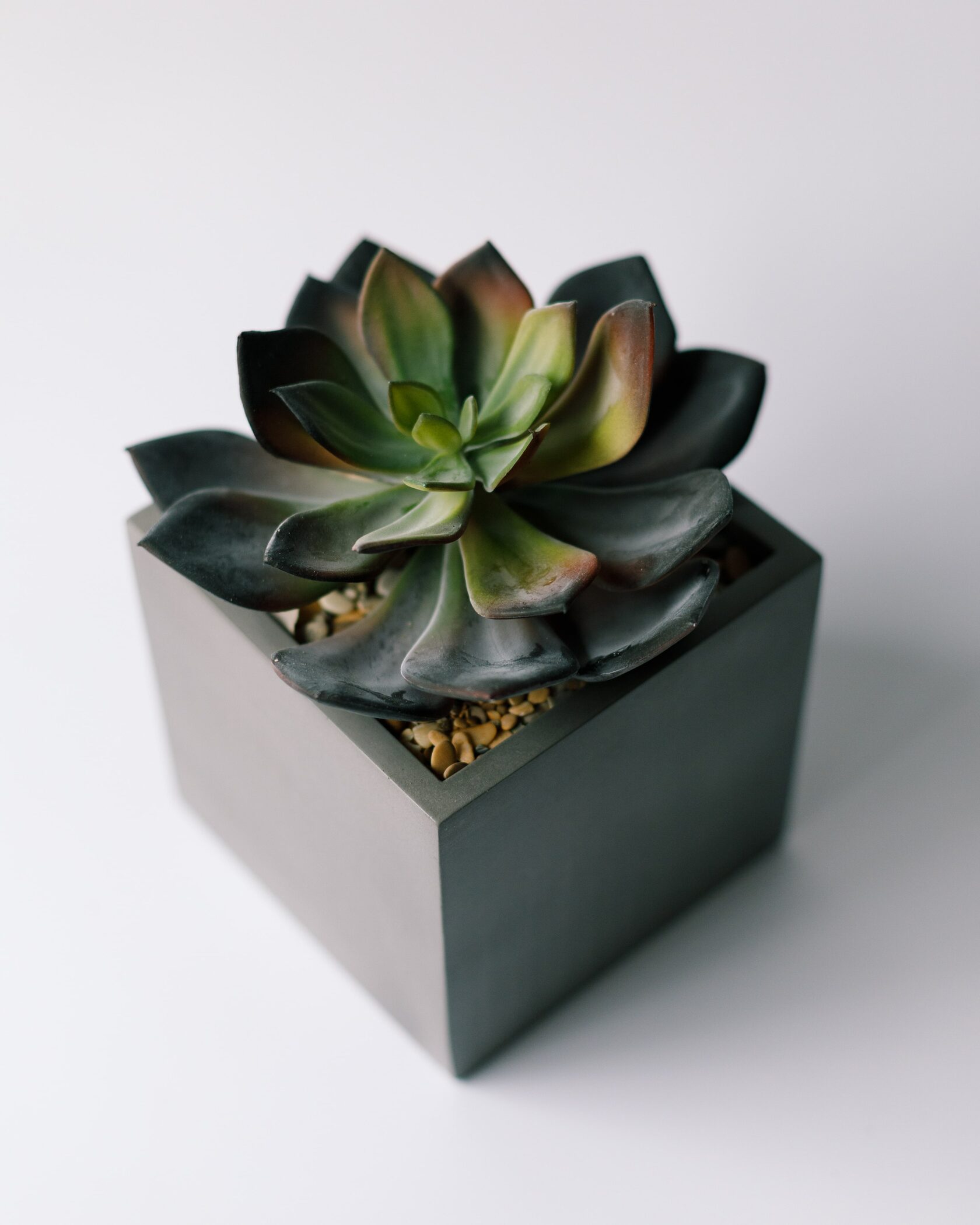 Искусственные суккуленты в кашпо из арт-бетона - это стильное и очень долговечное украшение интерьера.