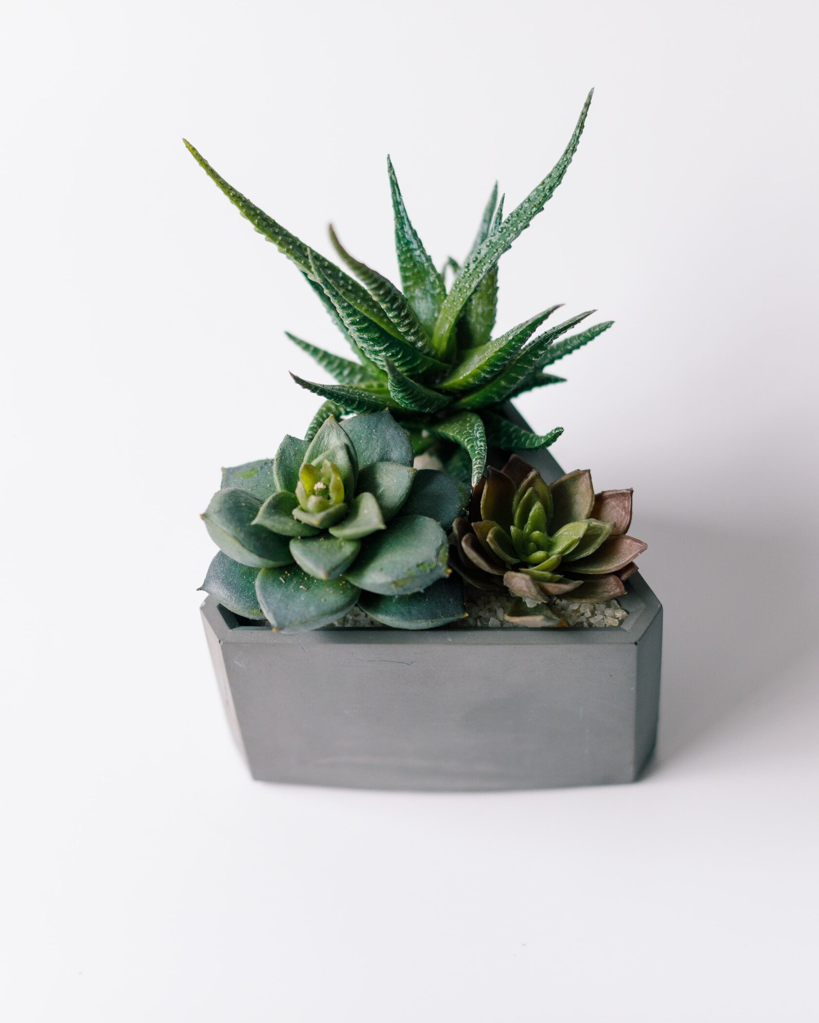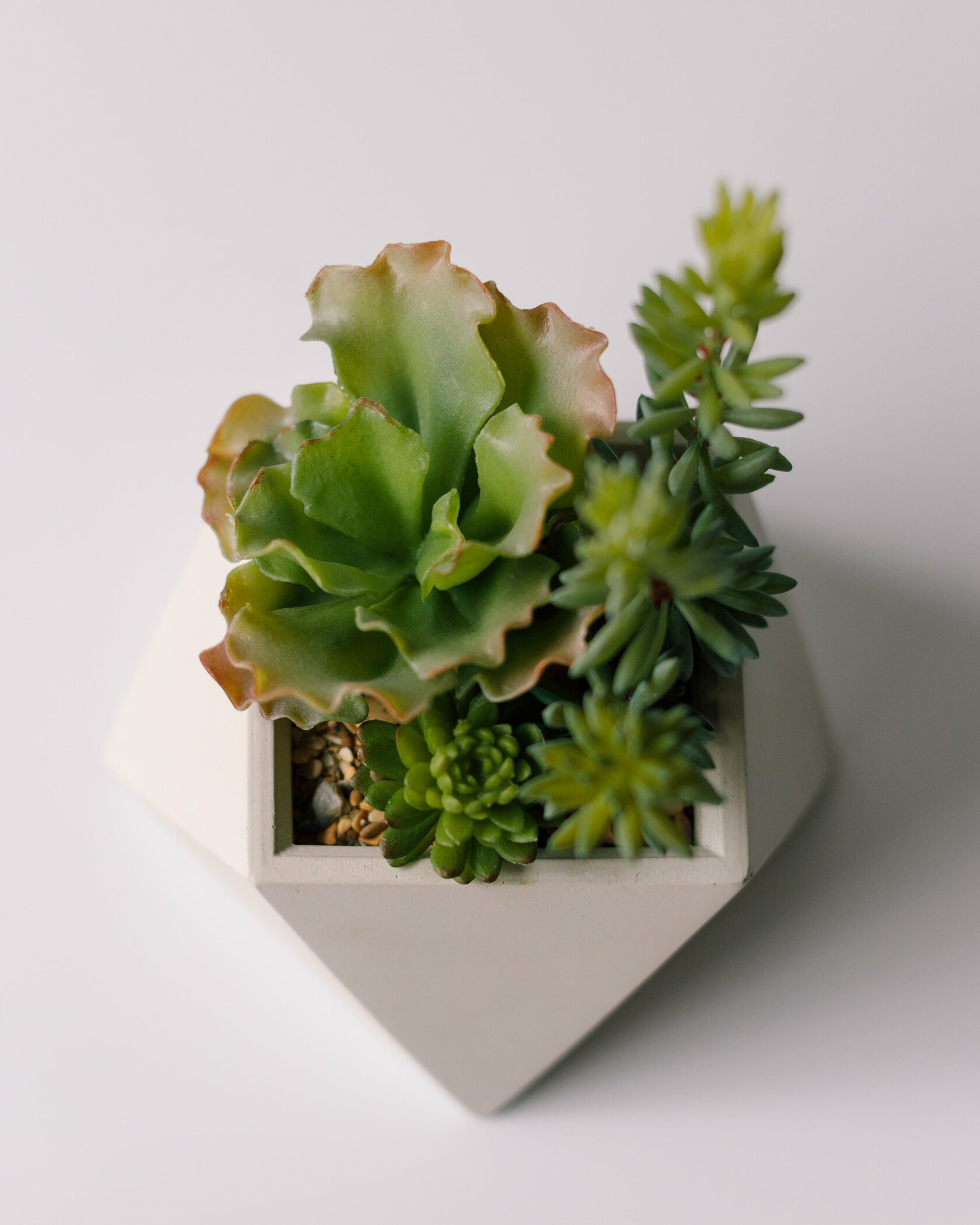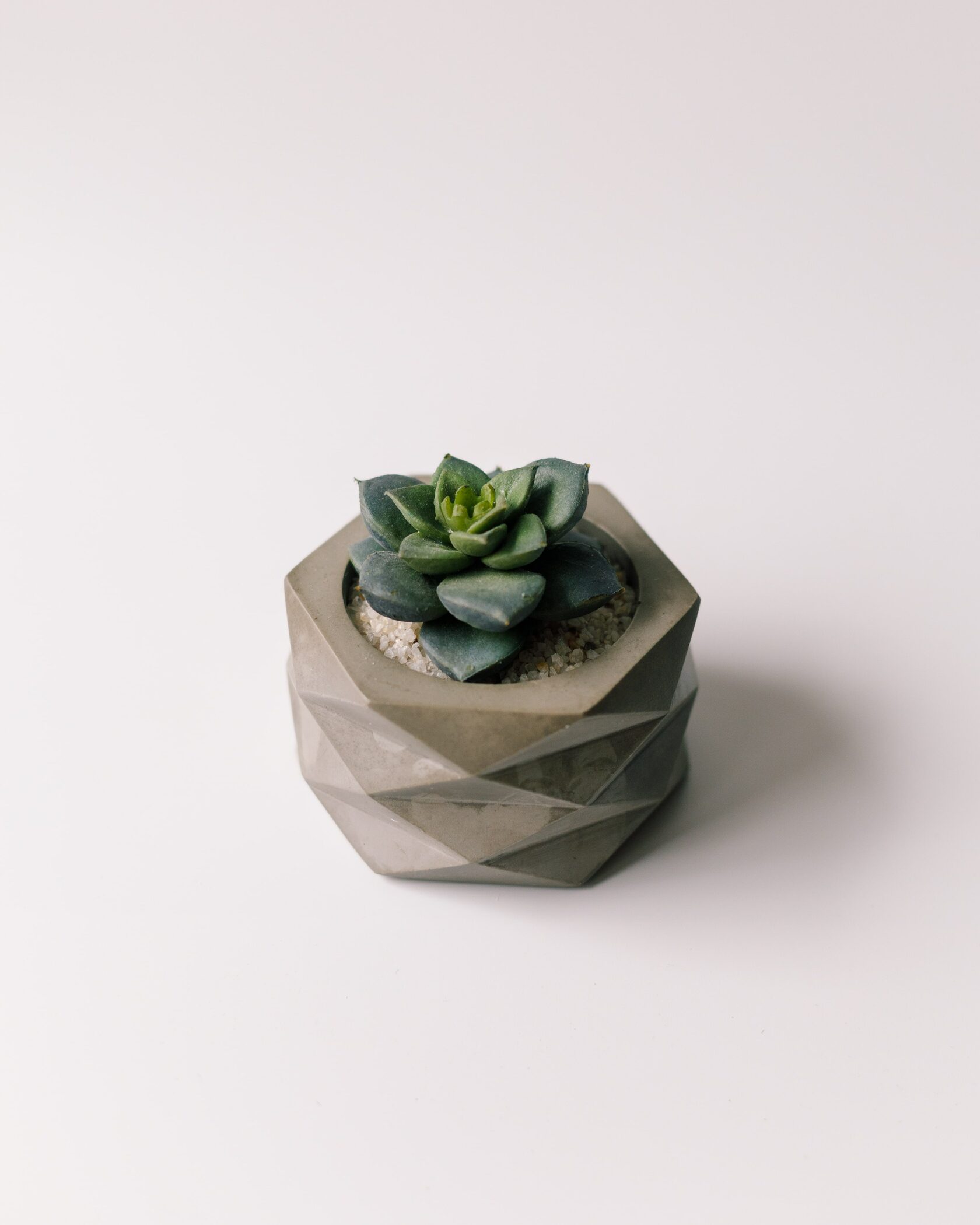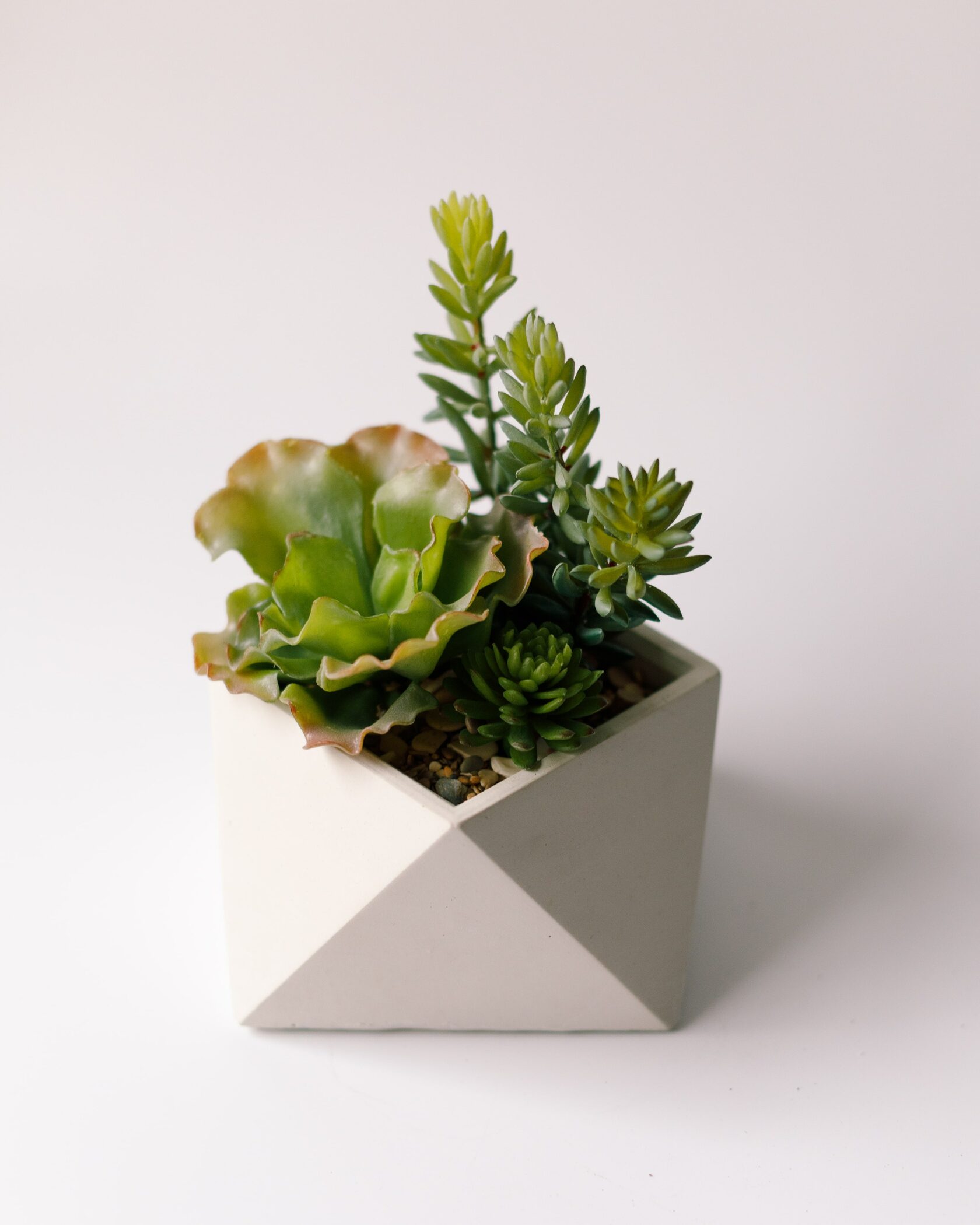 Искусственные суккуленты в кашпо из арт-бетона - это стильное и очень долговечное украшение интерьера.